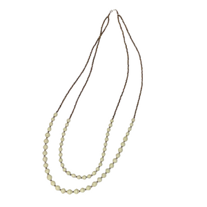 This standout stylish Mackindye Necklace includes. The necklace has four strands of small paper beads, with double strands of gold-coloured beads at the bottom of each main strand.  A beautiful piece that can be used to dress up a simple outfit.